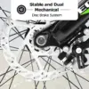 - 🌳[Advanced Shock Absorbing System] This mountain bike features a unique shock absorbing design that includes a 100mm front suspension fork and a thickened frame and shock absorber. This design effectively absorbs the shock of bumpy roads and provides a smooth riding experience. The parallel bars allow the bike to adapt to a variety of demanding road conditions, whether it’s off-road trails or rugged mountain roads, while maintaining stability and comfort.