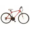Hi-Ten Steel-Frame Mountain Bike with Zoom Front-Suspension Fork. This bike includes 26-inch Alloy Wheels and Hubs, Mountain Bike tires, Alloy Seat Post, Adjustable Saddle and Handlebar height, V-style Front and Rear Brakes and 21-Speed Shimano Tourney TX SIS Gearing System.
