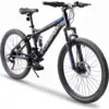 Discover a whole new riding experience with the 27.5 inch mountain bike for adults, designed to bring you unparalleled adventure and excitement. Equipped with a 21-speed gear system, you can easily shift through various terrains and push your limits. The 27.5 inch inflatable rubber tires provide exceptional grip and stability, whether you’re tackling rugged trails or cruising urban streets. With front and rear double disc brakes, you can rely on precise and dependable stopping power in any situation, ensuring your safety. The dual suspension system, featuring both a suspension fork, effortlessly absorbs bumps and thumps, allowing you to enjoy a smooth ride even on uneven surfaces. Whether conquering forest trails or navigating through the city, this 27.5 inch mountain bike for men women is your ideal companion. Are you ready to embrace the ultimate challenge? Hop on and explore the unknown world!