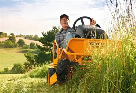 Ein Rasentraktor ist kein Wiesenmäher und schon gleich gar kein Gestrüppmäher. Das kann jeder bestätigen der schon einmal versucht hat hohes Gras oder Gestrüpp mit einem herkömmlichen Aufsitzmäher zu mähen. Verstopfte Mähhauben, rauchende Riemen und verbogene Messer sind oftmals das Ergebnis.
