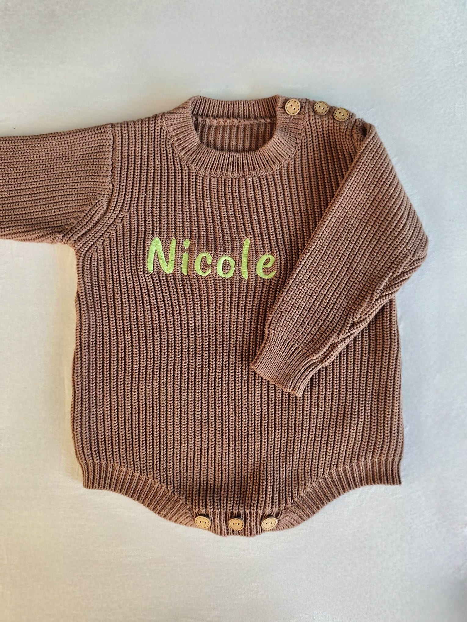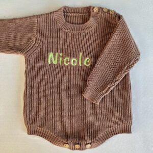 Bestickter Baby Strickbody aus reiner Baumwolle – Bodysuit – weich, hautfreundlich & perfekt personalisiert für dein Baby