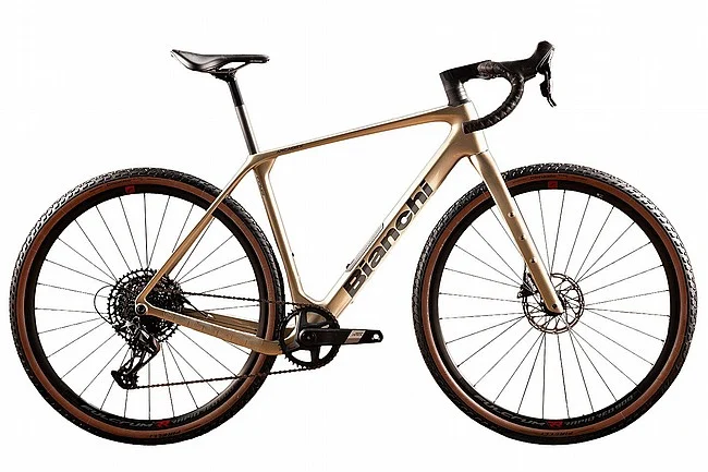 The 2025 Bianchi Arcadex COMP runs Fulcrum Rapid Red wheels, which will roll tough on challenging terrain and is offered with a Shimano GRX 610 mechanical groupset.