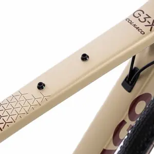 The G3-X is equipped with two protective plastic mudguards: one under the bottom bracket and one above the right chainstay to protect the chain from blows. And since longer adventures may require additional bags and bottle cages, the G3-X is equipped with two extra rivet pairs on the top tube and under the down tube.