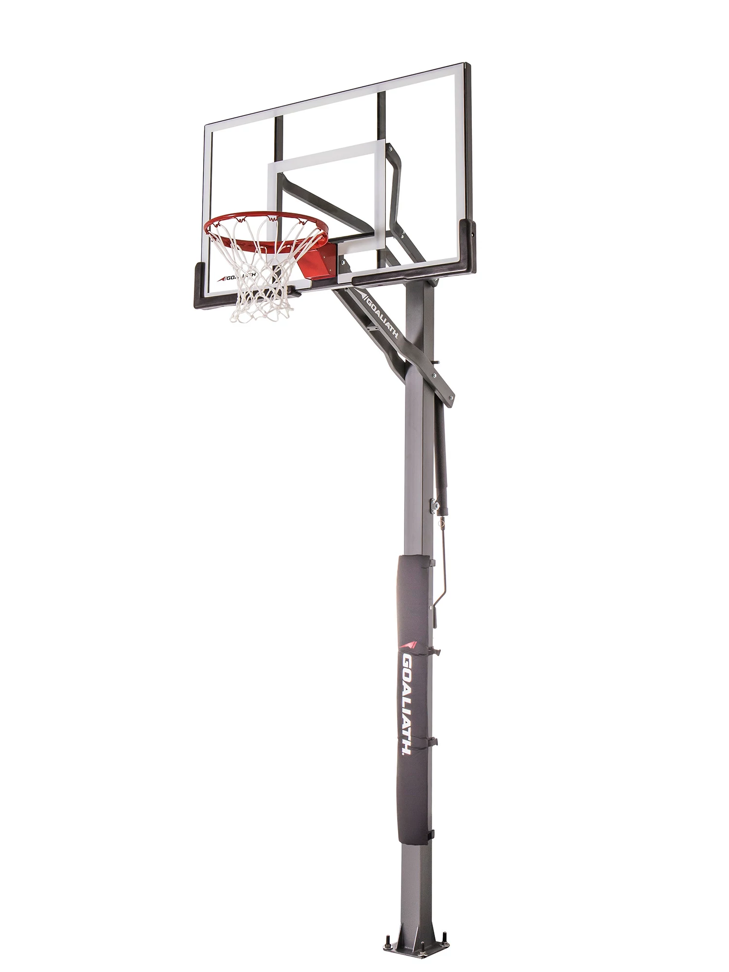 Dominate your home court with the Goaliath® 54” Prodigy In-Ground Basketball Hoop. This in-ground hoop features a tempered glass backboard, a 4”x4” two-piece pole, and pre-assembled pro-style flex rim for a strong and durable basketball system. Featuring new lower board arms and pole lock technology, the Prodigy hoop offers increased strength and stability during aggressive play. With corrosion protection the Prodigy hoop holds up to the weather and the intense pick-up game. Goaliath basketball hoops are made by the same company that manufactures Goalrilla basketball hoops/systems. Get years of fun with the Goaliath® 54” Prodigy In-Ground Basketball Hoop.