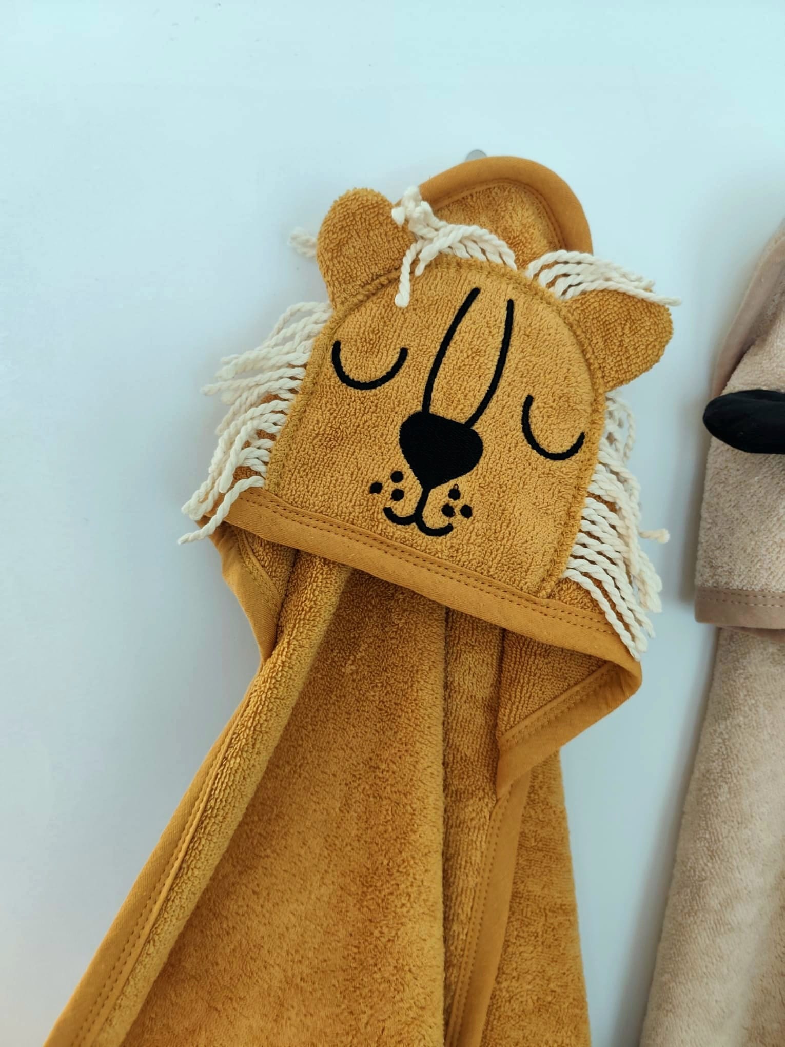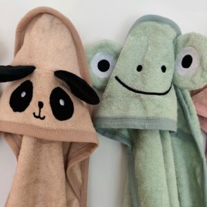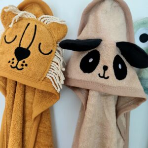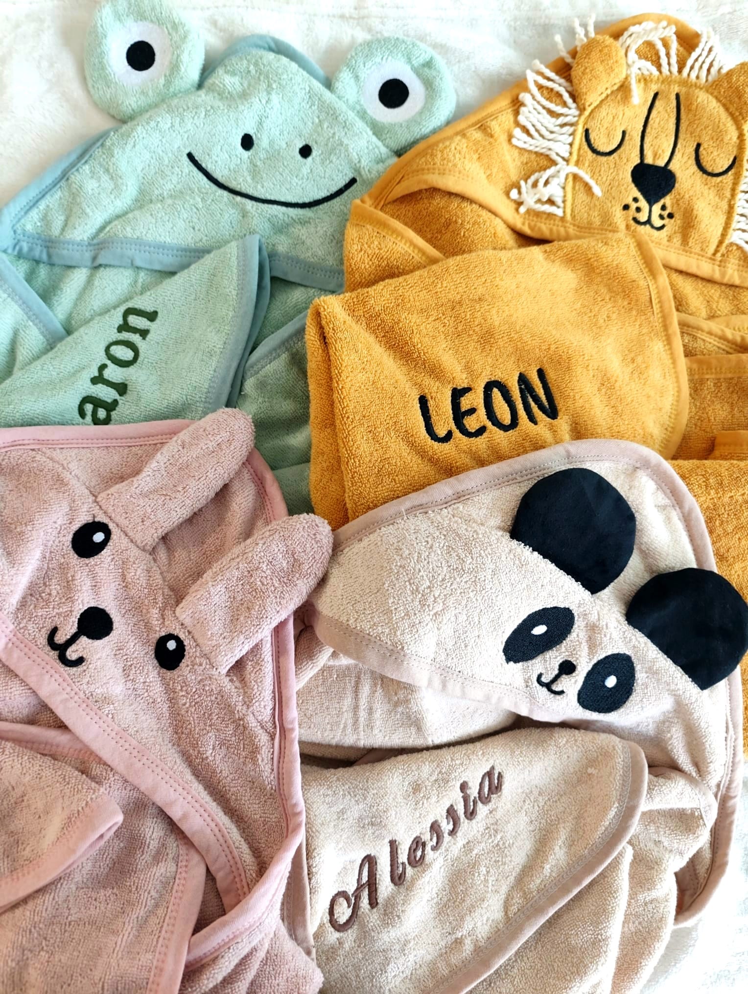 Kapuzenhandtuch Baby/Kleinkind mit Namen aus 100% Baumwolle – Weiches Tier-Design, mit Namen bestickt – Geschenk zur Geburt oder Taufe