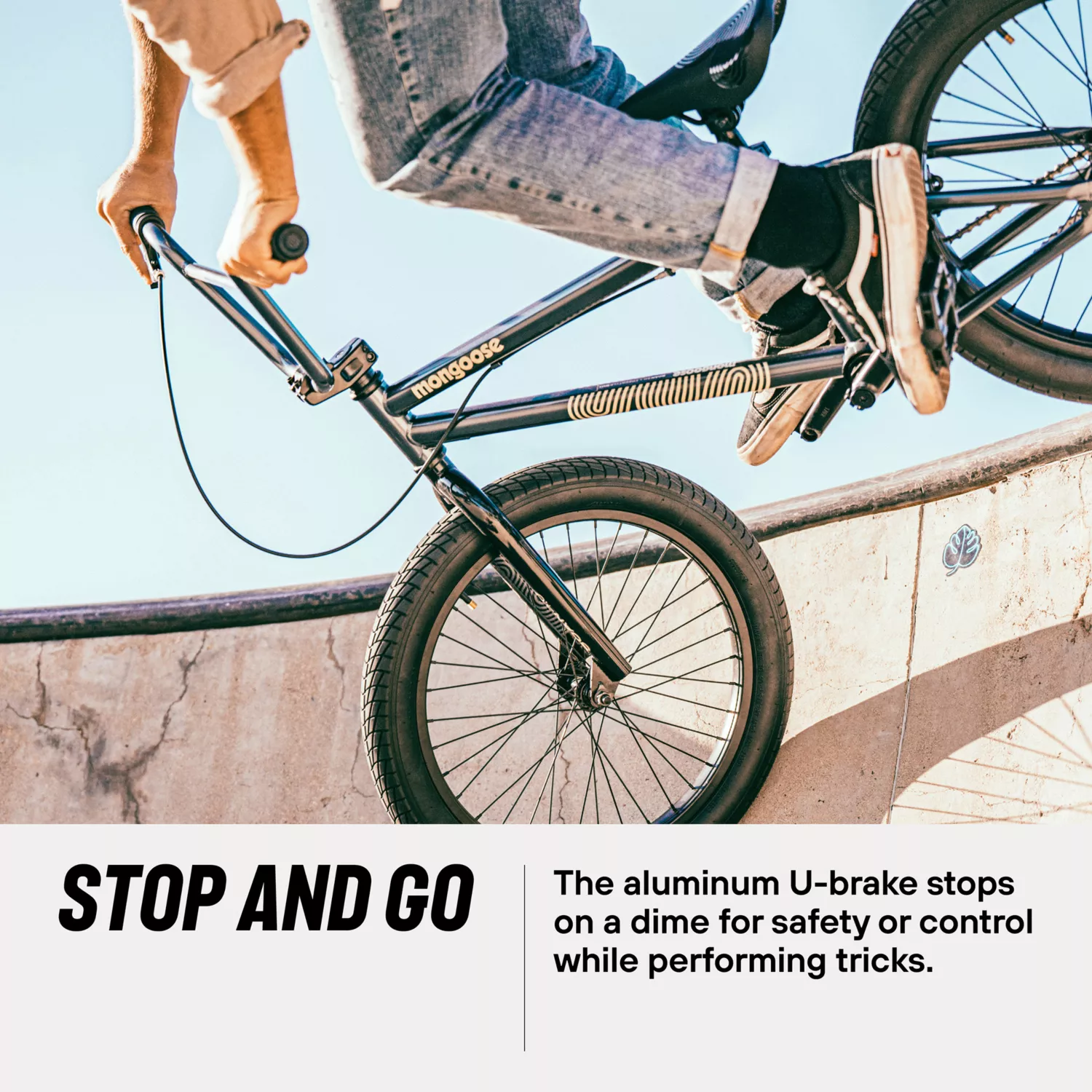 - Aluminum U-brake stops on a dime for safety or control while performing tricks