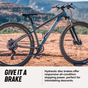 - Hydraulic disc brakes offer precise and responsive all-condition stopping power, perfect for intimidating descents