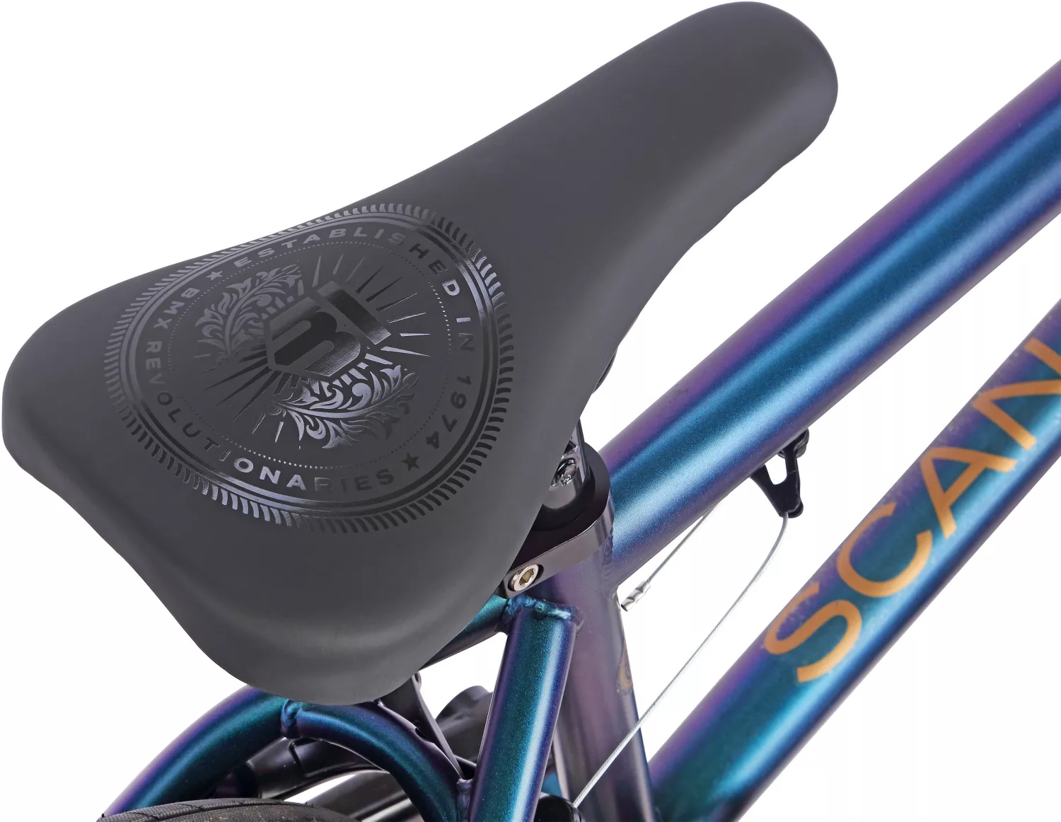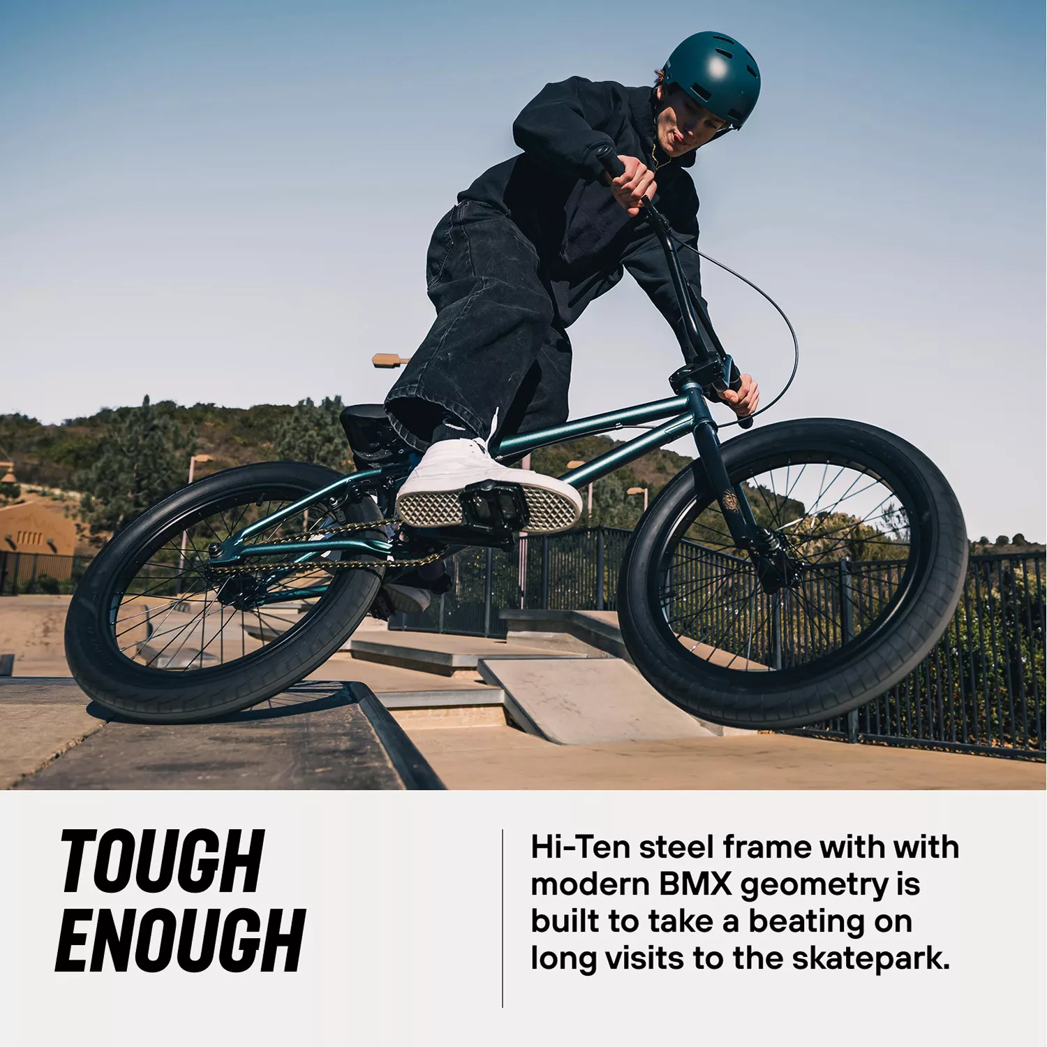 - Hi-Ten steel frame with BMX geometry is right at home on long visits to the skatepark