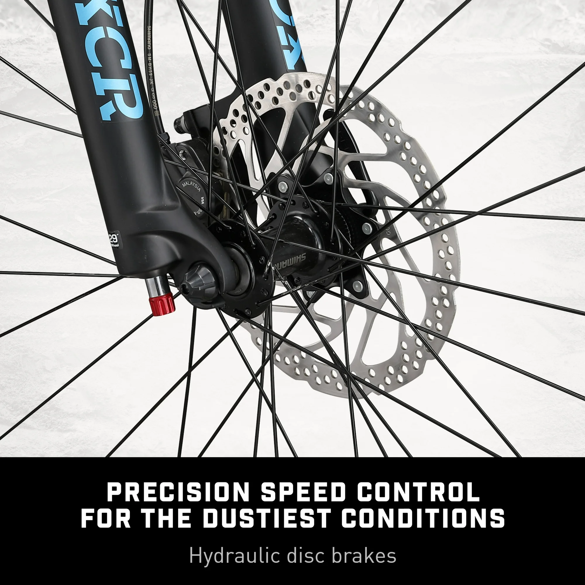- Hydraulic disc brakes deliver superior all-weather stopping power.