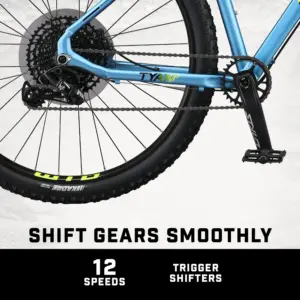 - 12-speed drivetrain with trigger shifters brings smooth gear changes to daring rides.