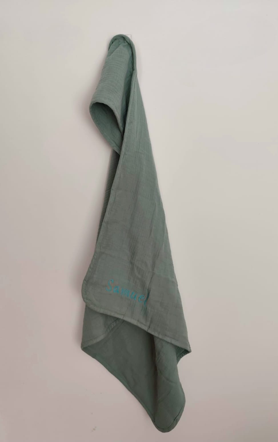 Musselin Kapuzenhandtuch mit Namen Baby – Name bestickt – Geschenk Geburt, Taufe