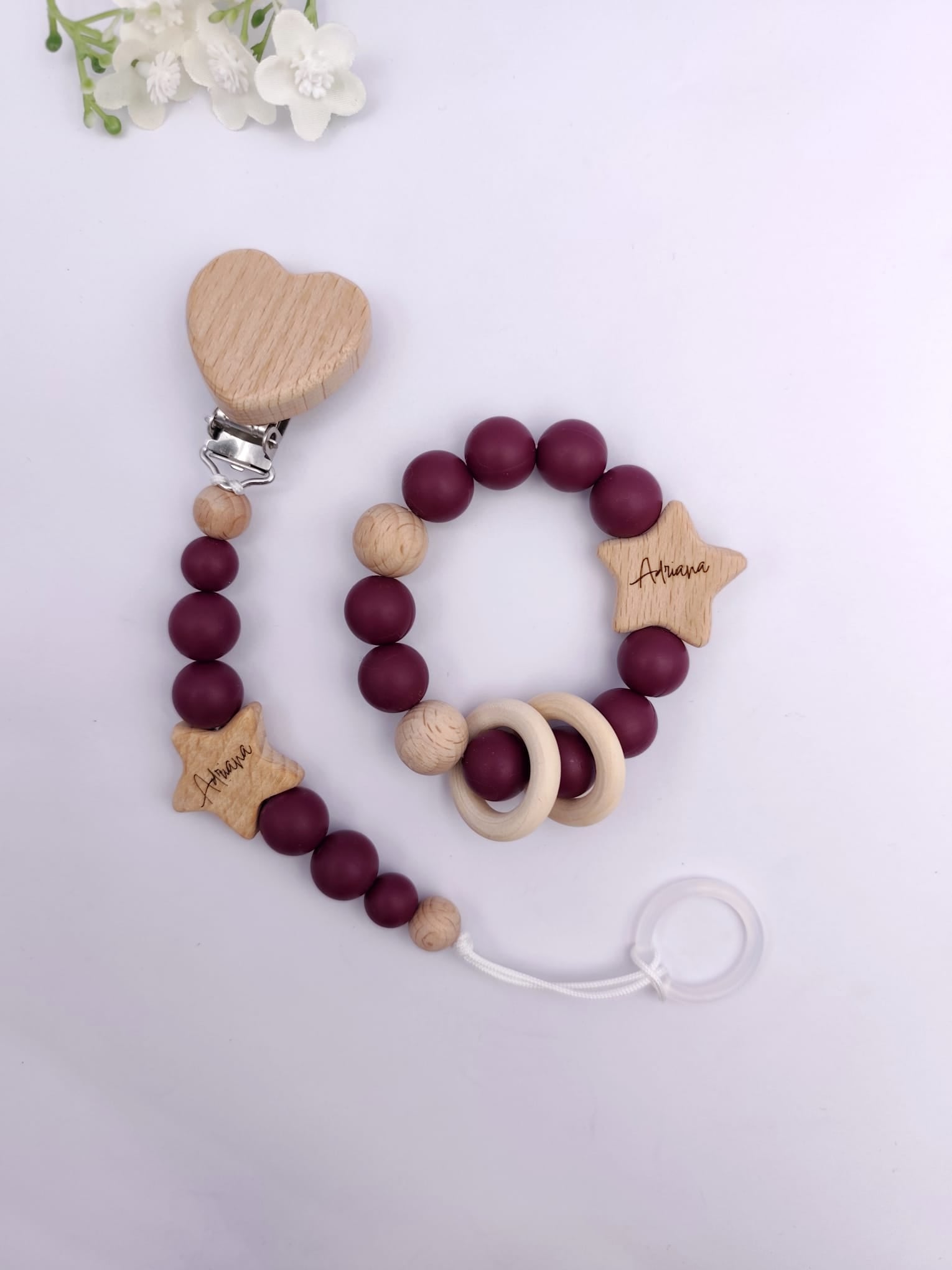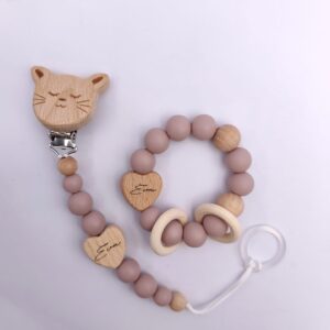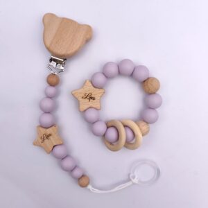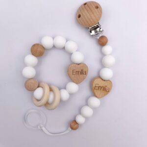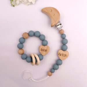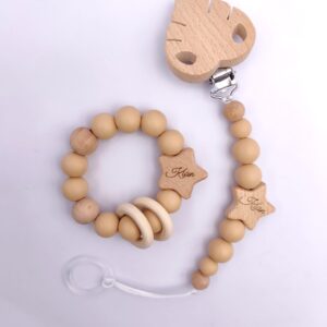 Pastell Schnullerkette & Greifling mit Namen | BPA-frei, handgemacht in Österreich, mit Namensgravur | Geschenk Geburt & Taufe ist ein hochwertig verarbeitetes Holzspielzeug für Kinder, das gezielt die motorische Entwicklung, Koordination und Kreativität fördert. Das stabile Design eignet sich ideal für aktives Spielen im Alltag und unterstützt freies, fantasievolles Lernen. Gefertigt aus robustem Holz und für Kinder sicher gestaltet.
