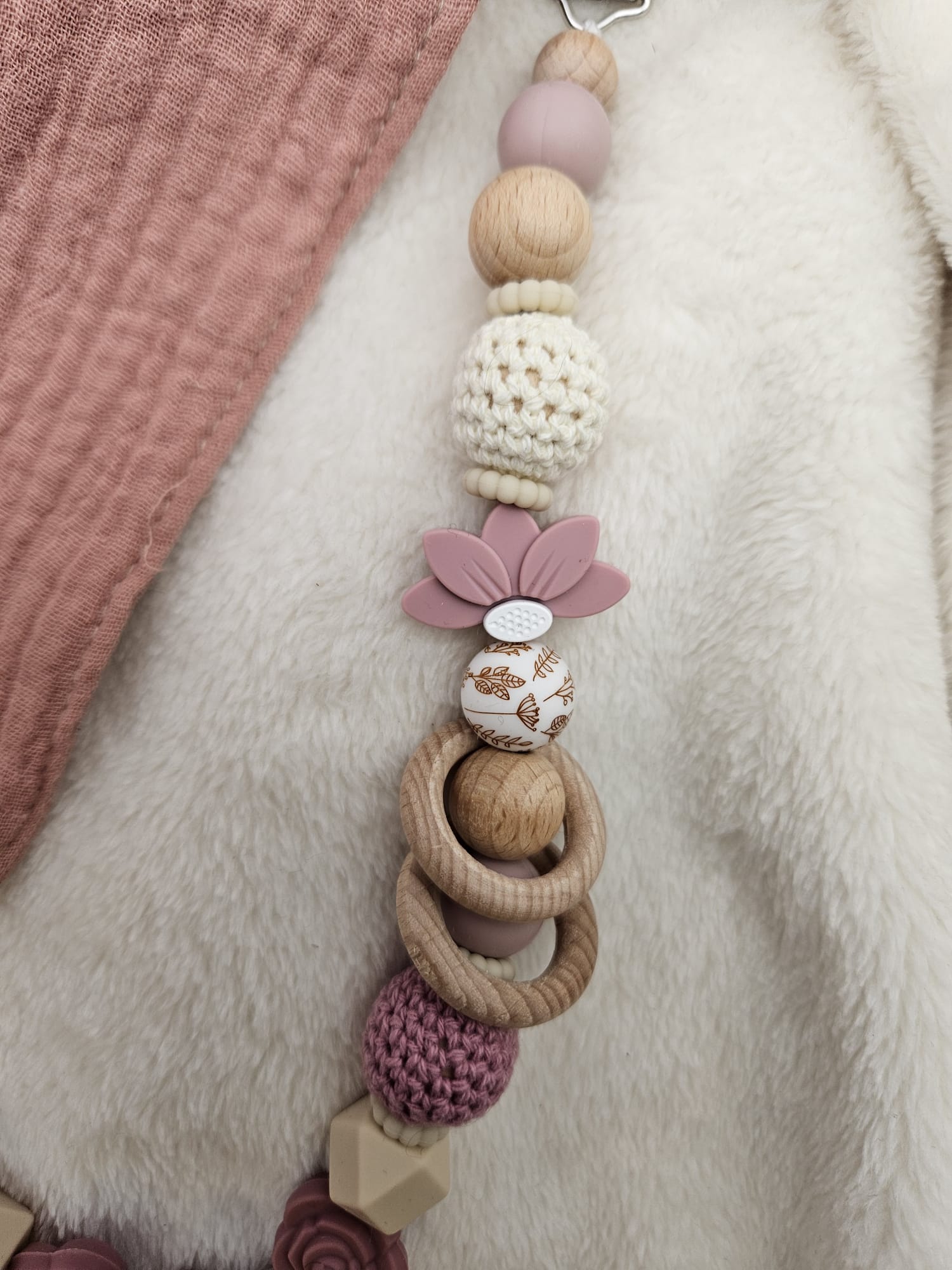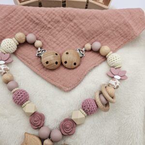 Personalisierte Kinderwagenkette für Mädchen – mit Namen | Holz & Silikon | BPA-frei