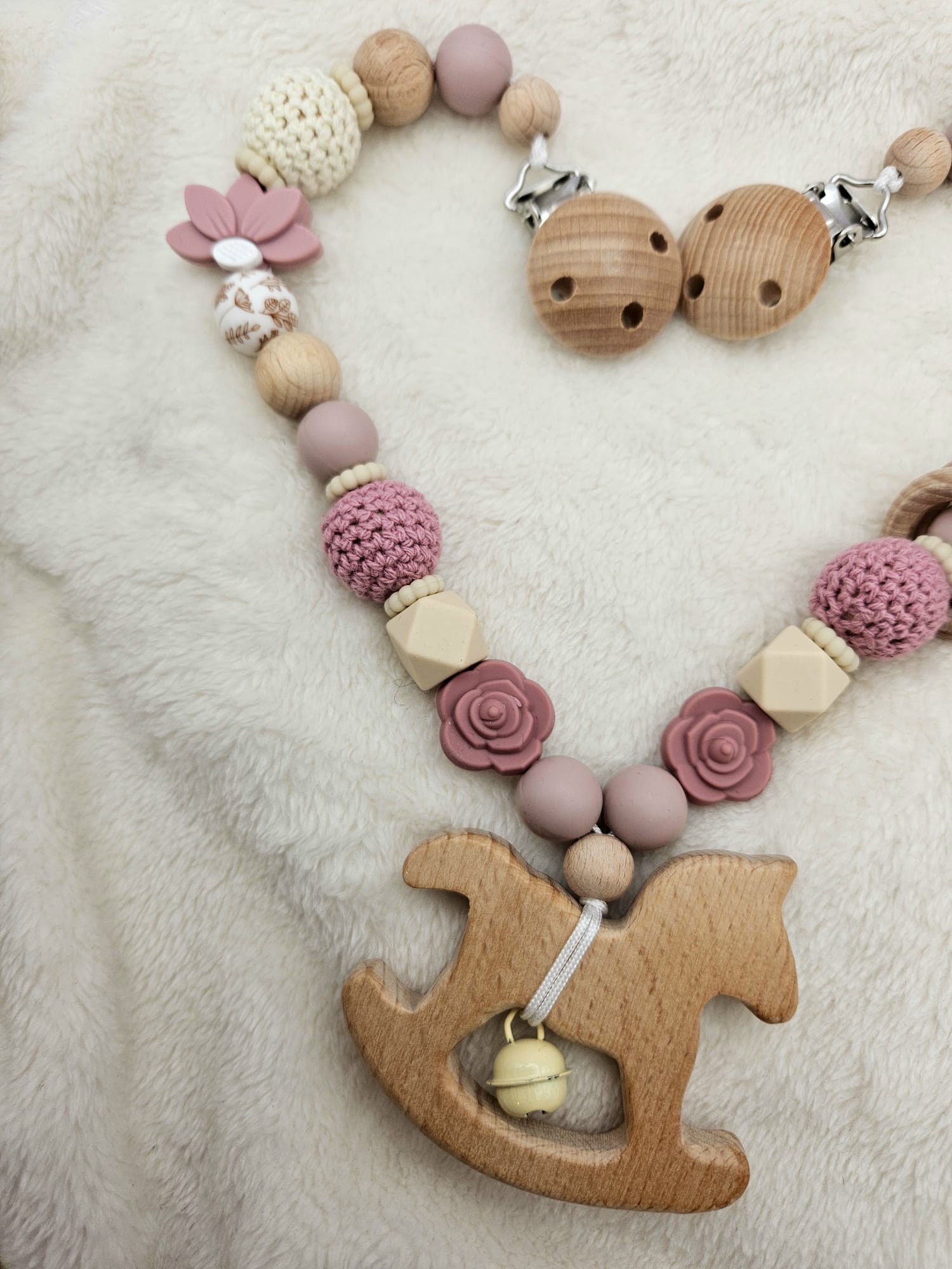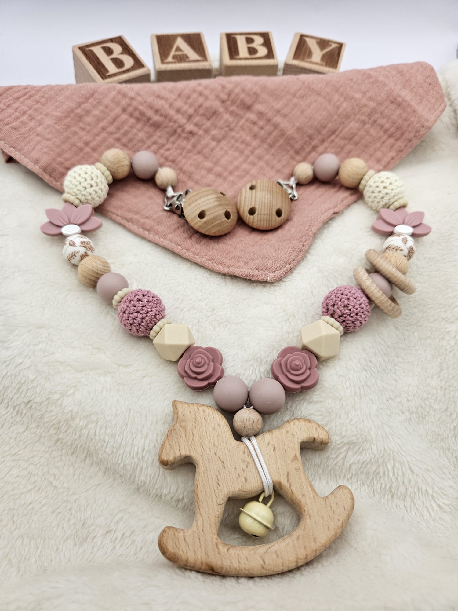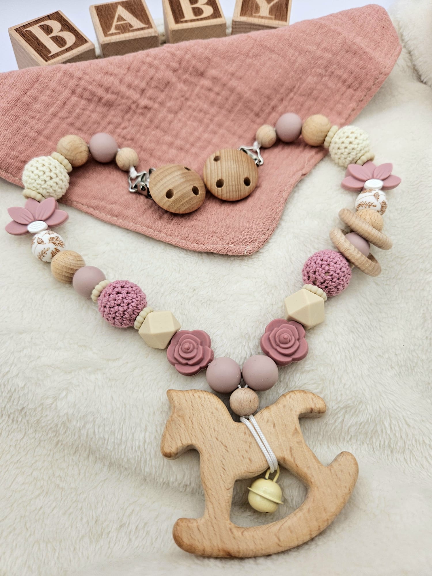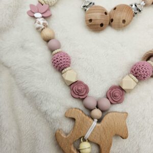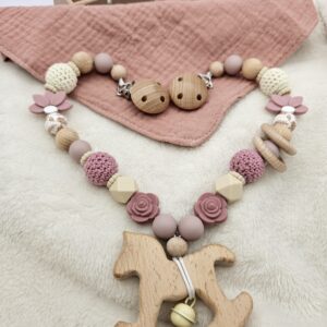 Personalisierte Kinderwagenkette für Mädchen – mit Namen | Holz & Silikon | BPA-frei ist ein hochwertig verarbeitetes Holzspielzeug für Kinder, das gezielt die motorische Entwicklung, Koordination und Kreativität fördert. Das stabile Design eignet sich ideal für aktives Spielen im Alltag und unterstützt freies, fantasievolles Lernen. Gefertigt aus robustem Holz und für Kinder sicher gestaltet.