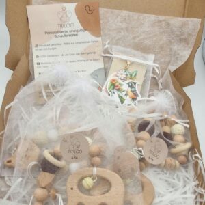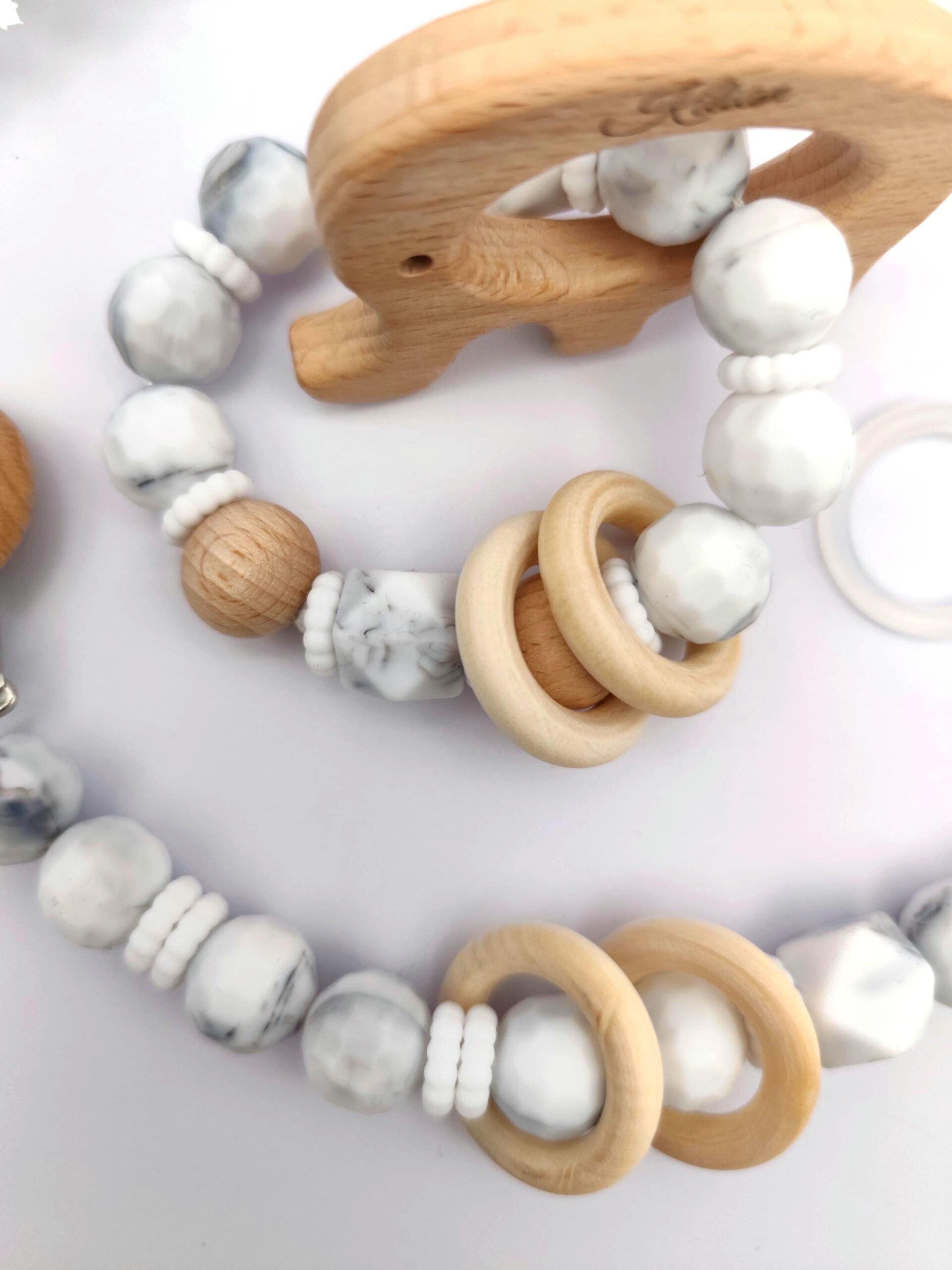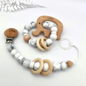 Personalisiertes Baby Geschenkset mit Gravur – Schnullerkette mit Namen & Greifling im Marmor-Design – Geschenk zur Geburt, Taufe, Babyparty ist ein hochwertig verarbeitetes Holzspielzeug für Kinder, das gezielt die motorische Entwicklung, Koordination und Kreativität fördert. Das stabile Design eignet sich ideal für aktives Spielen im Alltag und unterstützt freies, fantasievolles Lernen. Gefertigt aus robustem Holz und für Kinder sicher gestaltet.