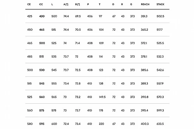 • Handlebar: MOST Talon Ultra Light Integrated; 430-515: 420mm; 530-545: 440mm; 560-595: 460mm