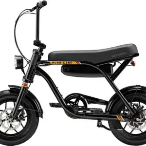 The Schwinn Hurricane is an e-bike that’s all about fast-moving fun. The moto-inspired frame features stylish touches, like solid mag wheels and a dual-crown fork, perfect for making an impression. The 250-watt motor enables a top speed of 17.5 miles per hour with the throttle, and pedal assist kicks in automatically should you choose to pedal the Hurricane instead. The wide tires let you ride comfortably wherever you take it, and your remaining battery life is shown on the throttle display. Additional features include mechanical disc brakes for all-condition stopping power, built-in fenders to shield you from road spray, and running daylights for nighttime visibility and all-day safety. Ride up a storm with the Hurricane e-bike from Schwinn.