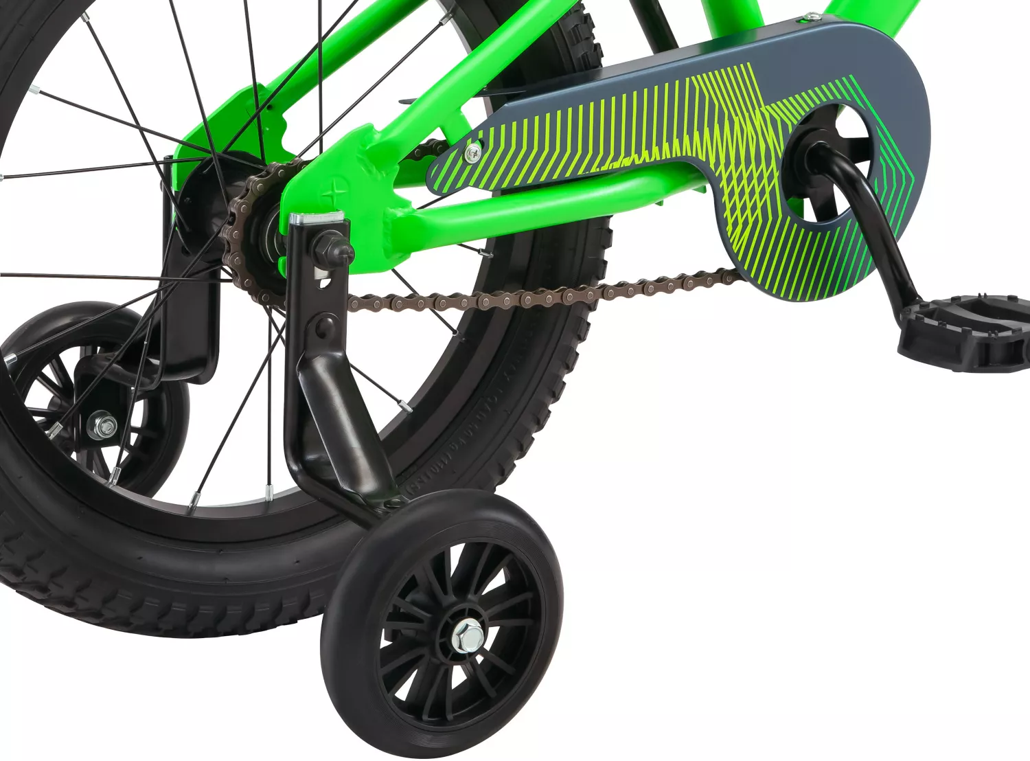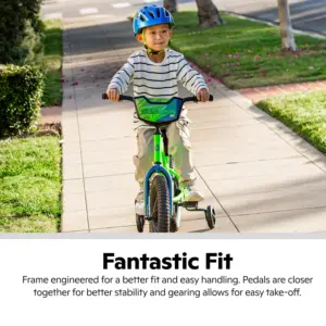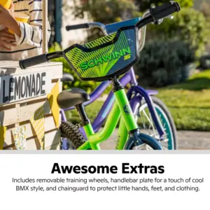 - Features removable training wheels and handlebar plate for a touch of BMX style