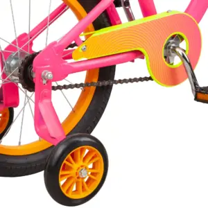 - Features removable training wheels, fenders, and a handlebar pad