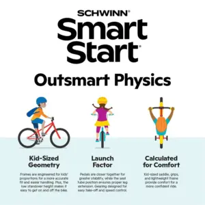 - Schwinn SmartStart&trade: Geometry is designed to outsmart physics and help kids in motion stay in motion